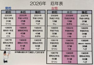 2026年の厄年表が出ました‼️ご確認くださいね